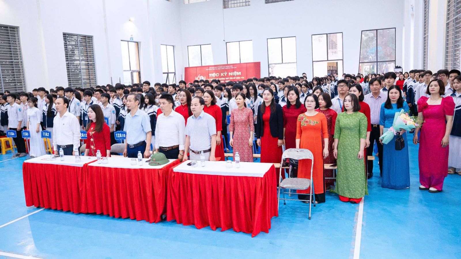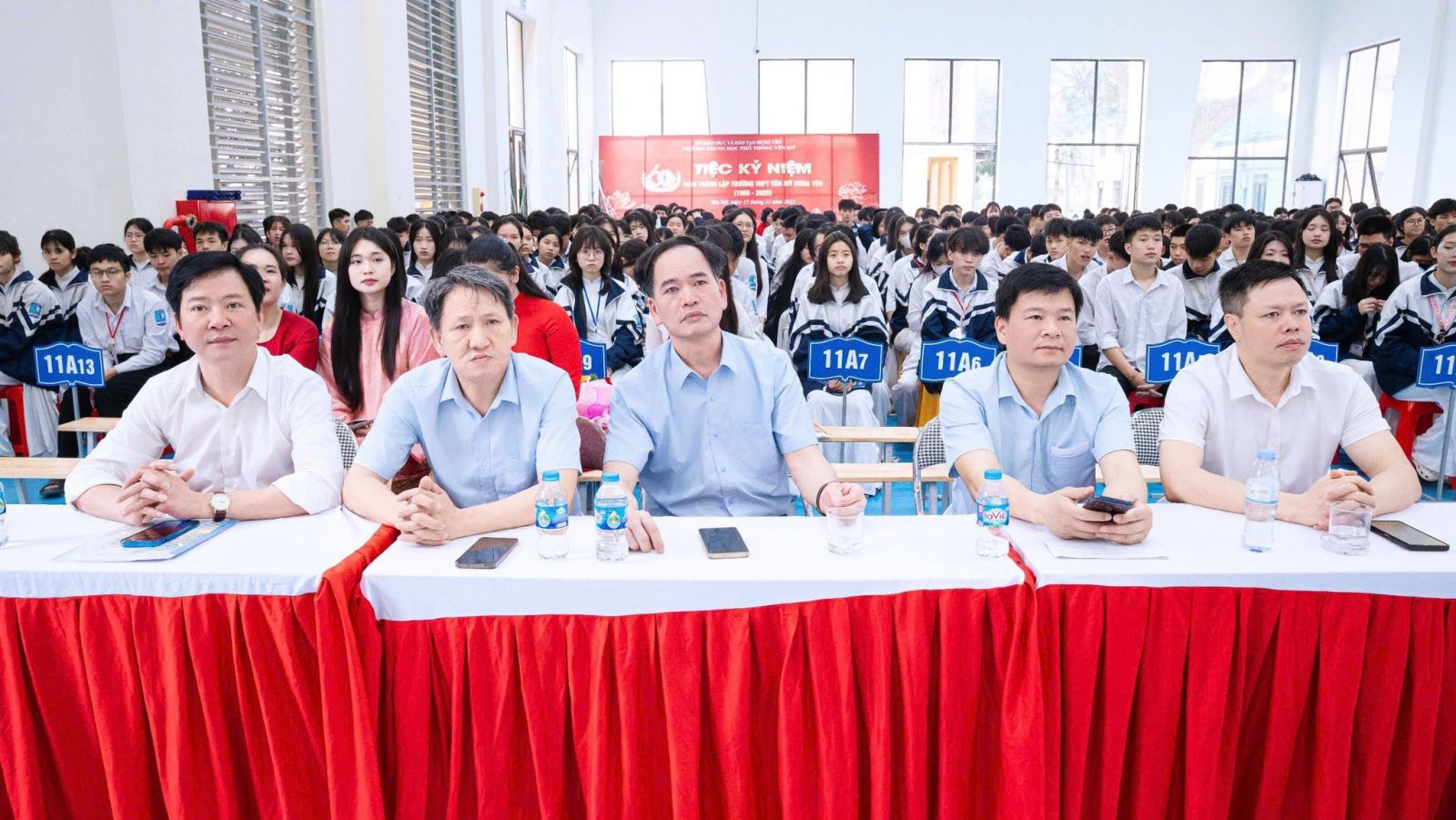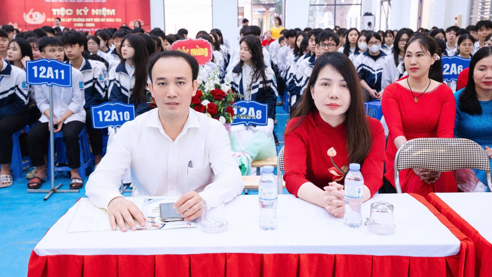 Thầy giáo Nghiêm Đức Văn – Hiệu trưởng trường THPT Yên Mỹ cùng các thầy cô trong Ban giám hiệu nhà trường, đại diện hội cha mẹ phụ huynh học sinh đã tặng hoa chúc mừng, trao những phần quà ý nghĩa thể hiện sự ghi nhận và biểu dương tinh thần nỗ lực vượt khó, niềm đam mê nghiên cứu khoa học, sự sáng tạo của các em học sinh; cùng với đó là tinh thần trách nhiệm của các thầy giáo, cô giáo trong việc giảng dạy, dìu dắt niềm đam mê sáng tạo của các em học sinh trên con đường chinh phục những đỉnh cao của tri thức. Đây là kết quả xứng đáng, thể hiện sự cố gắng nỗ lực không chỉ của cá nhân mà còn là biểu tượng của sự phối hợp chặt chẽ, trách nhiệm, tân tụy giữa nhà trường – gia đình và toàn xã hội.